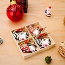 Christmas Wooden Gnome Ornaments Set, 4-Grid Cartoon Print Wooden Box with Santa and Gnome Decorations, Xmas Tree Hanging Decor |