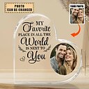 Personalized Acrylic Photo Plaque with Base,Custom Wedding Gift for Couple Plaque My Favorite Place In The World Is To You ,Father's Day,Anniversary,Wedding,Wedding Gift 20*15cm (8“*6”) |