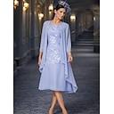 Two Piece Sheath Column Tea Length Wedding Guest Dress Mother of the Bride Dress Sleeveless Jewel Neck Elegant Wedding Guest Wedding Party Chiffon Lace Jacket Dresses with Appliques |
