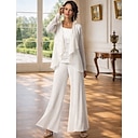 Jumpsuit Pantsuit 3 Piece Floor Length Mother of the Bride Dress Sleeveless Bateau Neck Elegant Plus Size Wrap Included Formal Wedding Guest Chiffon with Lace |