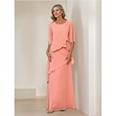 A-Line Floor Length Wedding Guest Dress Formal Dresses Tiered Dress Mother of the Bride Dress Half Sleeve Jewel Neck Elegant Vintage Simple Formal Chiffon with Ruffles Cascading Ruffles |