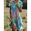 Women's Mini Dress Casual Dress Summer Dress Boho Dress Tribal Daily Vacation Weekend Regular Fit Floral Short Sleeve Shirt Collar Blue Aqua Blue Red Brown Summer |