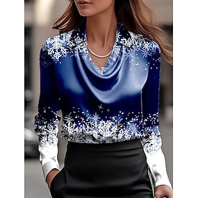 Crăciun Pentru femei Cămașă Bluză Grafic Plisat Fulg zăpadă Epocă Tropical Stilat Manșon Lung Guler Cămașă Topuri obișnuite Invitat la nunta Muncă Îmbrăcăminte de seară de petrecere Nasturi Imprimeu