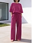 15% in seturi de pantaloni pentru femei seturi de in tricou simplu culoare pură buzunar talie elastică pantaloni zilnic stradă mânecă lungă guler rotund albastru negru alb bleumarin maro deschis vară primăvară