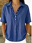 Cămăși pentru femei 100% bumbac, bluză cu nasturi, culoare uni, simplu, casual, mânecă 3/4, decolteu în V, bluze obișnuite, zilnic, negru, alb, roșu, kaki, vară