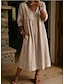 Pentru femei Rochii Midi Rochii inspirate din in In din bumbac artificial Rochii de Caftan Rochie albă De Bază Casual Zilnic În aer liber Vacanță Potrivire Largă Culoare pură Manșon Lung Stil Nautic