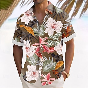 Bărbați Imprimeu floral Flori tropicale Cămașă Cămașă hawaiană Camașă cu nasturi Manșon scurt Hawaiană Stațiune Vacanță Concediu Costum de plajă Vară Primăvară Răsfrânt Imprimare 3D cămăși cu guler