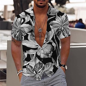 Bărbați Floral Hawaiian Aloha Cămașă Cămașă hawaiană Camașă cu nasturi Manșon scurt Modă Designer Casual În aer liber Stradă Casual Vară Primăvară Răsfrânt Imprimeu Buton în jos Negru Alb Galben