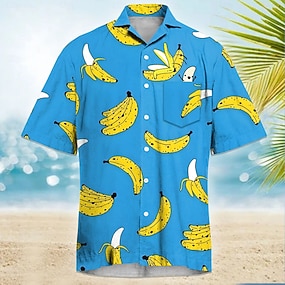 Bărbați Amuzant Banană Cămașă cubaneză Cămașă hawaiană Cămașă Aloha Manșon scurt Hawaiană Vacanță Concediu Costum de plajă Vară Primăvară Cămașă cu guler tabără Imprimare 3D Un buzunar frontal Galben