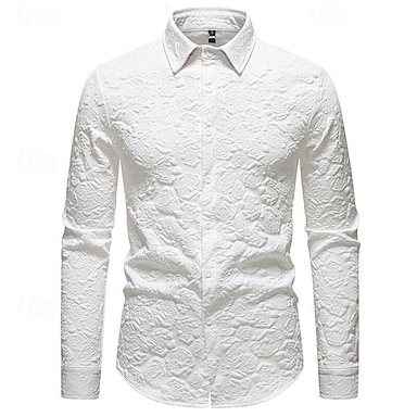 Bărbați Cămașă Cămașă de vară Cămașă casual Cămașă de plajă Camașă cu nasturi Negru Alb Manșon Lung Simplu Rever Vacanță Hawaiian Jacquard Îmbrăcăminte Poliester Modă Casual Comfortabil