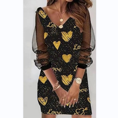 Pentru femei Rochie Mini Rochie casual Rochie de schimb Rochie florala Elegant Mânecă din plasă Zilnic Ieșire Sfârșit de săptămână Potrivire Largă Animal Buline Manșon Lung În V Vară Primăvară