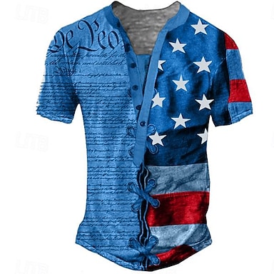 4 iulie 2026 250 de ani de Ziua Memorială Tricou cu grafic designer 3D pentru bărbați cu steagul American mânecă scurtă Henley în aer liber zilnic sport
