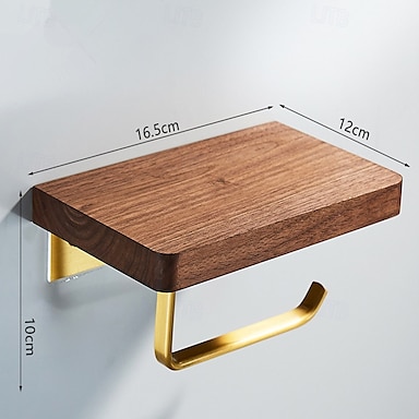 Suport pentru hârtie igienică pentru baie, suport pentru hârtie igienică din nuc, alamă solidă, suport pentru hârtie igienică de lux în stil hotelier, cu funcție de depozitare a telefonului mobil,