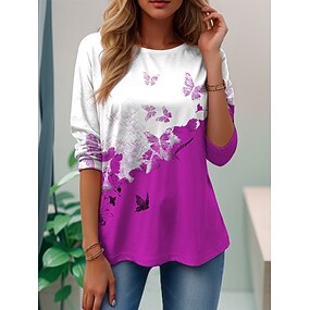 Tricou pentru femei cu guler rotund mânecă lungă tunică grafic fluture plante vintage elegant clasic topuri regulate print zilnic weekend negru roșu violet maro verde