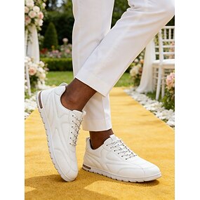 Pantofi de mireasă casual albi pentru bărbați – pantofi sport minimalisti și ușori pentru nunți în grădină, petreceri și evenimente smart casual