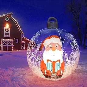 Lumină balon de Crăciun gonflabil rgb transparent de 60 cm, ornamente uriașe de Crăciun decor în aer liber, minge din pvc de Crăciun pentru decor de Crăciun, grădină, curte și terasă în aer liber