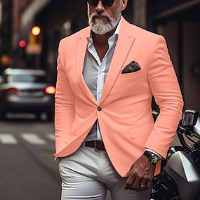 Bărbați Blazer Afaceri Petrecere cu cocktail Petrecere Nuntă Modă Casual Primăvara & toamnă Poliester Culoare solidă Buton Buzunar Comfortabil Cu Un Nasture Blazer Roz Deschis Galben Roz Îmbujorat