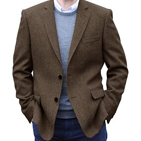 Bărbați Tweed Blazer Guler crestat Retro / vintage Spic Blazer Bleumarin Maro Gri Închis Fit standard Un singur sân Trei nasturi