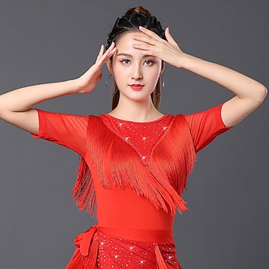 dans latino dans de sală top cu strasuri cu franjuri ciucuri ruching antrenament de performanță pentru femei jumătate de mânecă poliester înalt