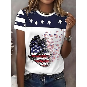 Tricou patriotic pentru femei de Ziua Independenței imprimare grafică steagul american vintage stilat clasic cu manșon scurt gât rotund topuri regulate zilnice weekend alb-albastru alb curcubeu vară