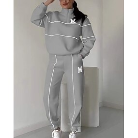 Pentru femei Seturi de pantaloni Manșon Lung Stil Nautic Grafic Bloc Culoare Scrisă Imprimeu Modă Șic Stradă Zilnic Casual Zilnic Albastru piscină Negru Alb Primăvară Fit regulat