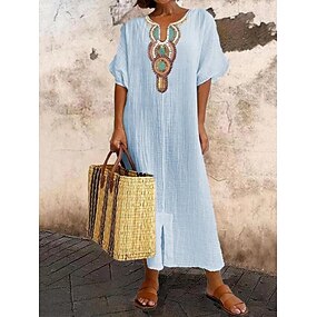 Pentru femei Rochie Maxi lungă Rochie Maxi In din bumbac artificial Rochii de Caftan Rochie casual De Bază Modern Zilnic Sfârșit de săptămână Potrivire Largă Floral Manșon Jumate Gât despicat