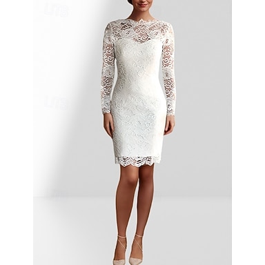 Rochii albe de absolvire pentru Little Wedding Rochii de nuntă Fustă Coloană cu umerii descoperiți Maneca lungă scurtă mini Rochii pentru mirese din satin cu culoare solidă