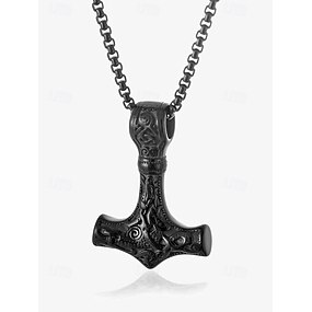 colier cu pandantiv cu ciocan de Thor viking pentru bărbați - bijuterii din mitologia nordică, mjolnir din oțel inoxidabil pentru casual și cosplay