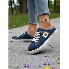 Adidași din pânză denim pentru femei cu design cu șireturi – pantofi casual cu talpă joasă pentru mers pe jos și purtare zilnică