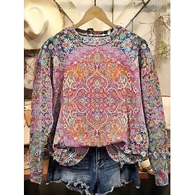 Pentru femei Hanorac pulover Imprimeu Floral Grafic Geometric Cald Modă occidental Manșon Lung Stil Nautic Topuri obișnuite Casual Stradă Zilnice Albastru piscină Negru Fucsia Portocaliu Trifoi