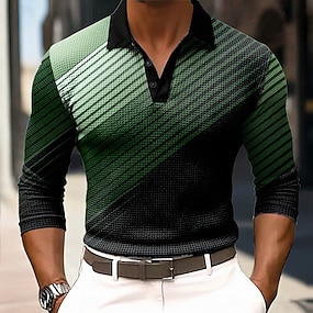 Bărbați Geometric Tricouri polo Waffle Cămașă de golf Manșon Lung Tricouri de polo Cămăși cu guler Casual Îmbrăcăminte de vacanță Îmbrăcăminte formală Îmbrăcăminte de festival Nasturi Imprimare 3D