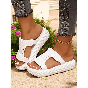 Sandale tricotate cu platformă pentru femei, respirabile – sandale ușoare pentru plimbări, călătorii, ieșiri de vară, plajă și purtare zilnică