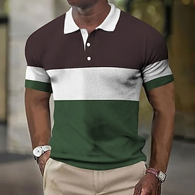 Bărbați Dungi Polo de rugby Manșon scurt Tricouri de polo Cămăși cu guler Ocazional afaceri Afaceri Școală Oficial Zilnice Imprimare 3D Nasturi Vară Maro Închis Verde Închis Albastru Închis