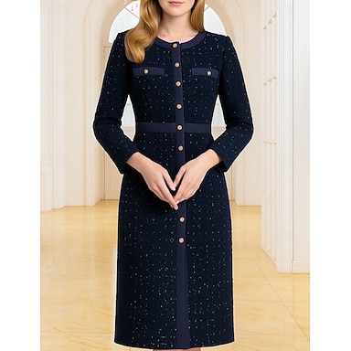Rochie de tip sheath columnă lungime până la genunchi rochie de petrecere rochie de cocktail rochie pentru invitat la nuntă rochie pentru mama miresei cu mânecă lungă gât rotund elegantă vintage