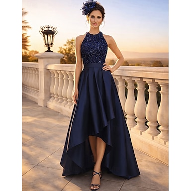Linia -A Asimetric Rochii de seara Rochii pentru invitați de nuntă Rochie De Bal Rochie formală Strălucitor & Sclipitor Înalt Mic Fără manșon Bijuterie Purtare de petrecere Semi formal Invitat la