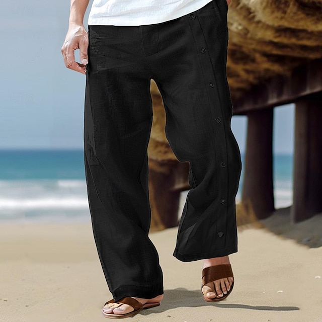 Bărbați Pantaloni de in Pantaloni Pantaloni de vară Picior drept Crăpătură Simplu Confort Respirabil Lungime totală Casual Zilnic Concediu Modă De Bază Negru Alb Micro-elastic