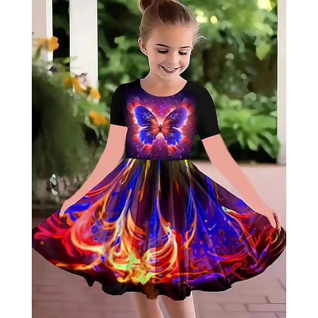 Girls ' 3D Grafic Fluture Rochie Manșon scurt Vară Primăvară Vacanță Zilnic Concediu Prințesă Frumoasa Dulce Copii 4-12 ani Rochie casual Rochie A line Lungime Genunchi Fit regulat 2026 - $16.49 –P5