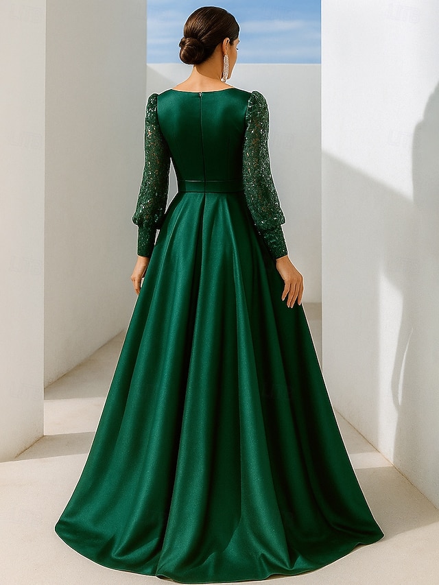 Rochie de invitați la nuntă lungime până la podea A-Line Rochii formale Rochie de seară Rochie pentru mama miresei Rochie cu mâneci lungi de tip crew Elegantă vintage strălucitoare formală spandex cu 2026 - $110.99 –P1