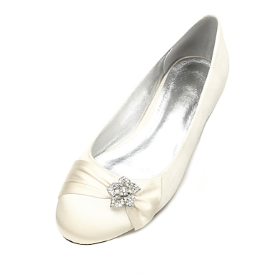 Pentru femei pantofi de nunta Sandale de cristal Pantofi de mireasa Piatră Semiprețioasă Floare de satin Legătură Panglică Toc Drept Vârf rotund Balerină Satin Negru Alb Cristal