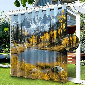 perdea impermeabilă în aer liber, draperii glisante pentru perdele de terasă, draperii de pergolă, peisaj montan 3d pentru foișor, balcon, verandă, petrecere, 1 panou