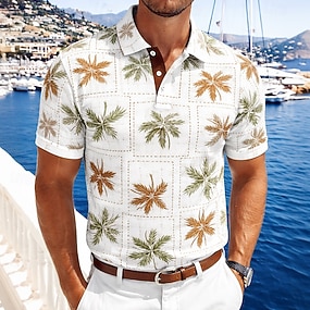 Bărbați Palmier Tricouri polo Manșon scurt Tricouri de polo Cămăși cu guler Hawaiană Casual Îmbrăcăminte Atletică Îmbrăcăminte de vacanță Nasturi Primavara vara Albastru piscină Alb Galben
