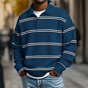 Bărbați Benzi orizontale Tricouri polo Waffle Polo de rugby Texturat Manșon Lung Tricouri de polo Rever Îmbrăcăminte sportivă Casual Școală Îmbrăcăminte Atletică Purtare Zilnică Imprimare 3D