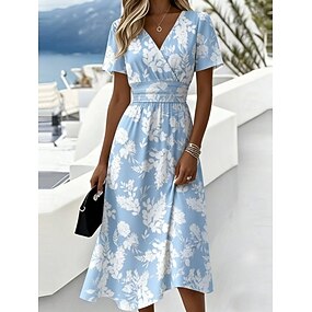 Pentru femei Rochii Midi Rochie de schimb Vacanță Casual Boho Zilnic Rochie de vară Rochie de primăvară Fit regulat Floral Grafic Manșon scurt Stil Nautic În V Albastru piscină Albastru celest