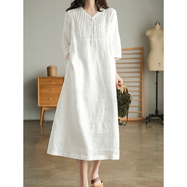 Pentru femei Rochii Midi In din bumbac artificial Rochie de schimb Rochie casual De Bază Casual Zilnic Vacanță Fit regulat Simplu Lungime Manșon 3/4 În V Negru Alb Verde Deschis Albastru Deschis Vară
