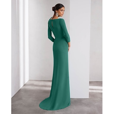 Linia -A Lungime Podea Brodat cu mărgele Rochie formala Rochia Mamei Miresei Rochii de seara Rochie De Bal Rochie formală Spate Deschis Split de înaltă Lungime Manșon 3/4 Scoateți gâtul Oficial