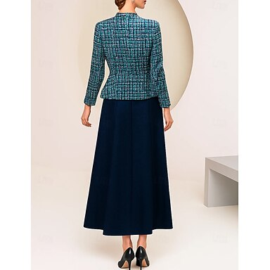 Rochie tip Fustă Coloană formată din două piese cu lungimea ceaiului Rochie de petrecere Rochie de cocktail Rochie pentru invitat la nuntă Rochie pentru mama miresei Mâneci lungi Decolteu cu guler