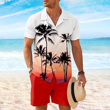 Bărbați Grafic Copac de cocos Plajă 2 buc Seturi de tricouri Seturi potrivite Manșon scurt Pantaloni scurti Stil Nautic Hawaiană Designer Casual În aer liber Vacanță Zilnic Imprimare 3D Primavara vara