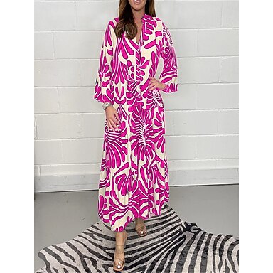 Women's Midi Dress Casual Dress Boho Chic Dresses Bohemia Cute Stylish Vacation Daily Beach Loose Fit Graphic 3/4 Length Sleeve V Neck Pink Blue Spring Fall Winter
