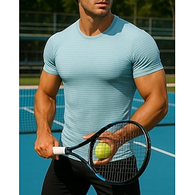 Herr Solid färg Sporttröja Tennisskjorta Tenniströja Kort ärm Reflexband Svettavvisande Fuktabsorberande Andningsfunktion Tennis Golf Pickleball Rund hals Svart Blå Ljusblå Tenniskläder