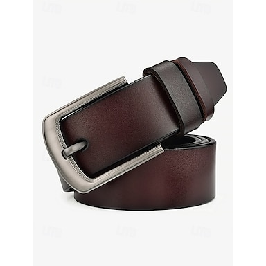 klassiskt läderbälte för män – slitstarkt brunt och svart bälte med metallspänne för vardags- och högtidskläder